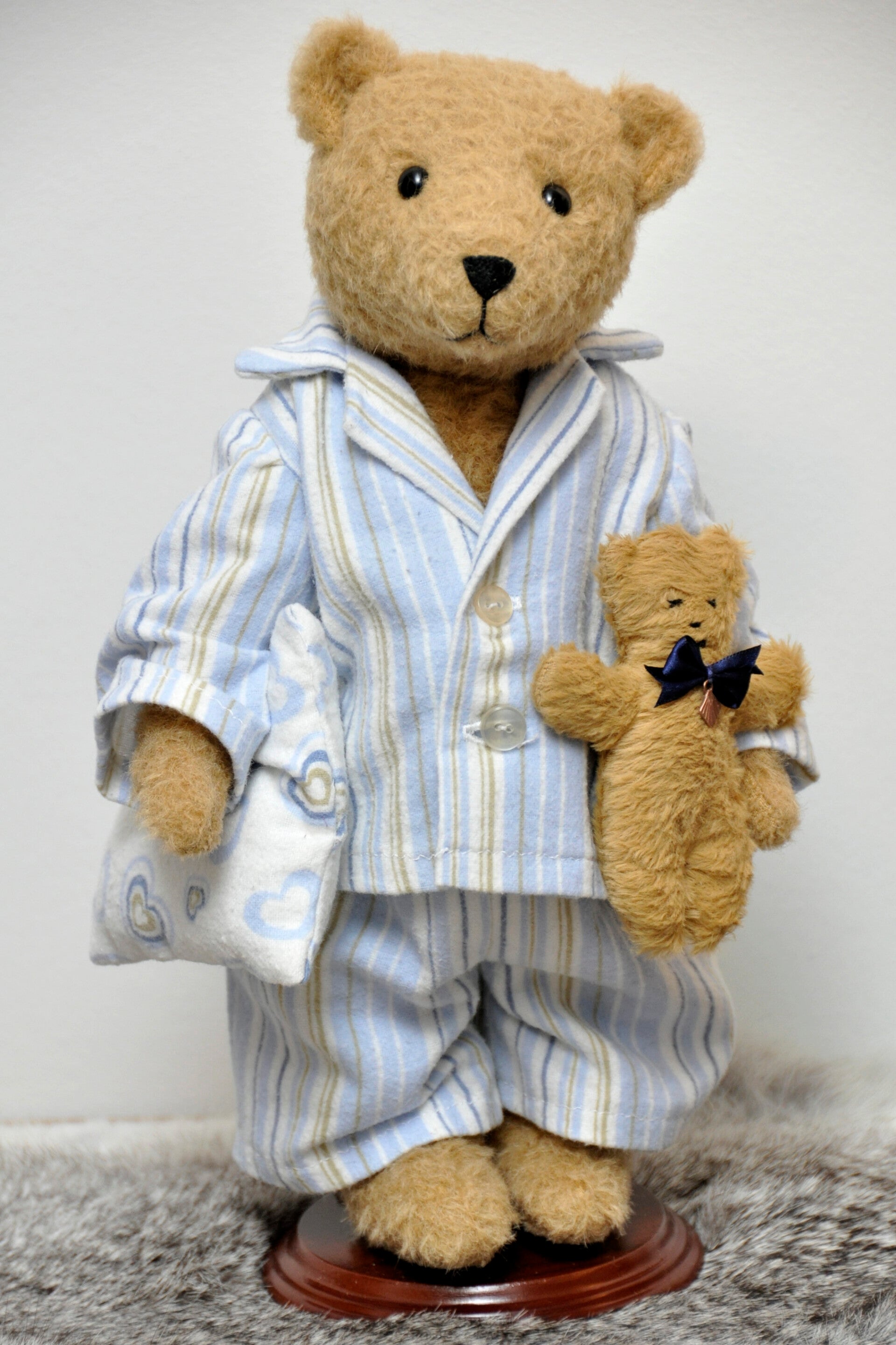 Afgewerkte kleding met mini-beertje en kussentje afzonderlijk te bestellen bij "Berenkleding" PYJAMA zolang de voorraad strekt.
